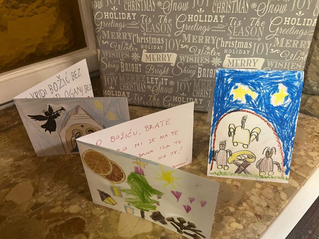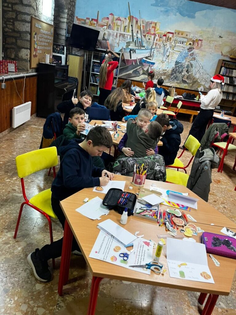 U utorak,16.12. u školskoj knjižnici je održana božićna radionica. S obzirom da naša škola ove godine provodi projekt Skriveni Brač u kojem tragamo za blagom našeg otoka, tema radionice bile su bračke božićne čestitke. Učenici su lijepili motive sušene naranče, fritula, ognja, pšenice i ostalih neizostavnih motiva u tradicionalnoj proslavi Božića. Svaka čestitka zaokružena je željama za dobrom novom godinom. Učenici su se potrudili i stvorili jako kreativne čestitke koje je ravnateljica odlučila poslati svim partnerima i prijateljima naše škole. A ima li bolje čestitke od one stvorene rukama naših učenika?
